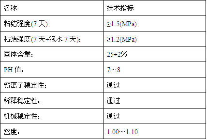 該界面劑是由聚合物乳液與多種助劑配制而成的一種新型水泥與混凝土界面修補材料,與水泥、砂等配合使用。既具有聚合物粘結力強、抗拉、抗彎強度高、抗滲性好等性能,又有水泥能在水或潮濕環(huán)境中硬化、硬化收縮小的優(yōu)點(diǎn)。